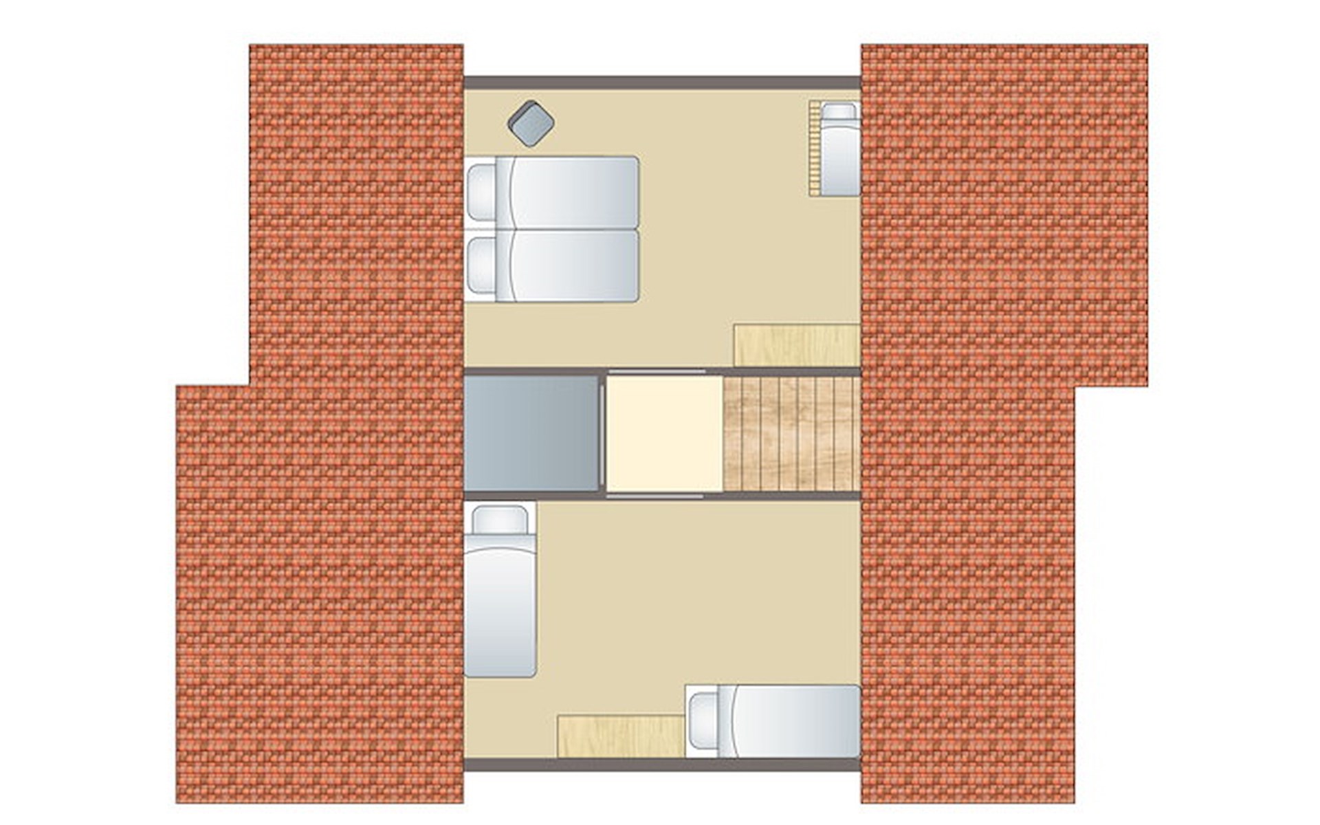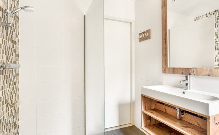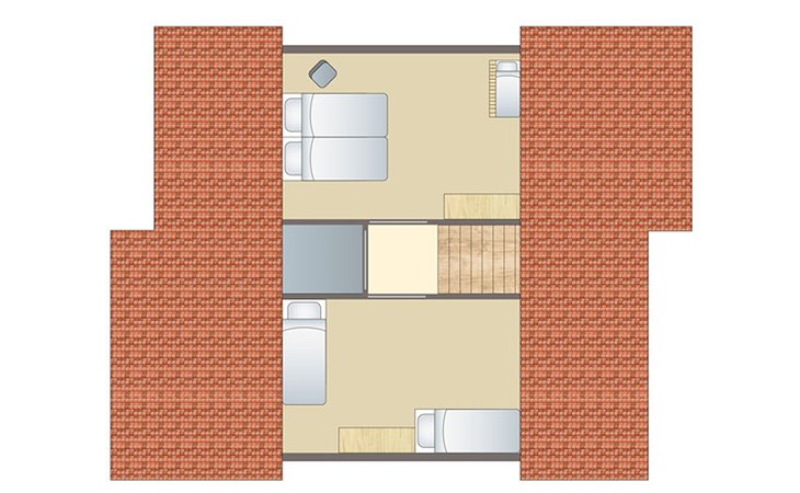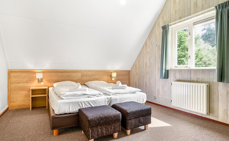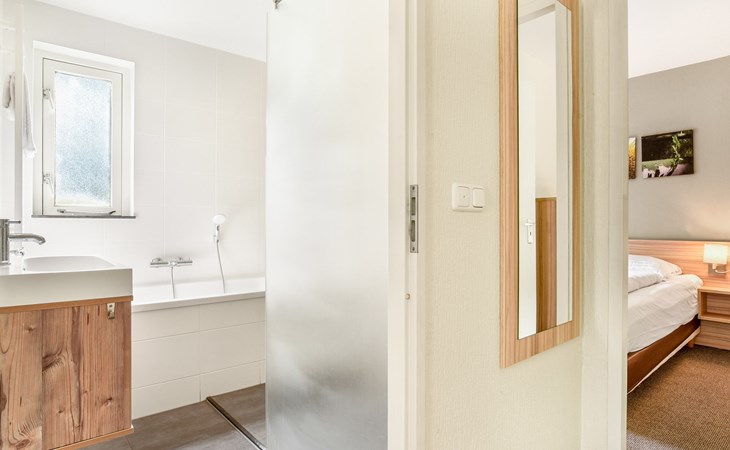 Op de begane grond bevindt zich 1 slaapkamer met 2 éénpersoons boxsprings. De badkamer heeft een ligbad, vlakke douche en wastafel. Er is een apart toilet op de begane grond. De eerste verdieping heeft 2 slaapkamers met elk 2 éénpersoons boxsprings. Ook is er een houten ledikant.