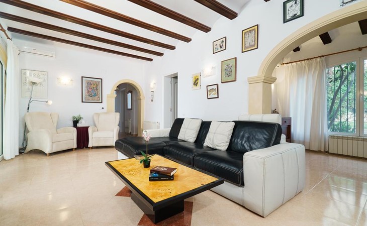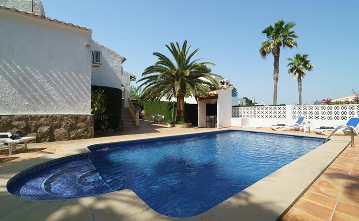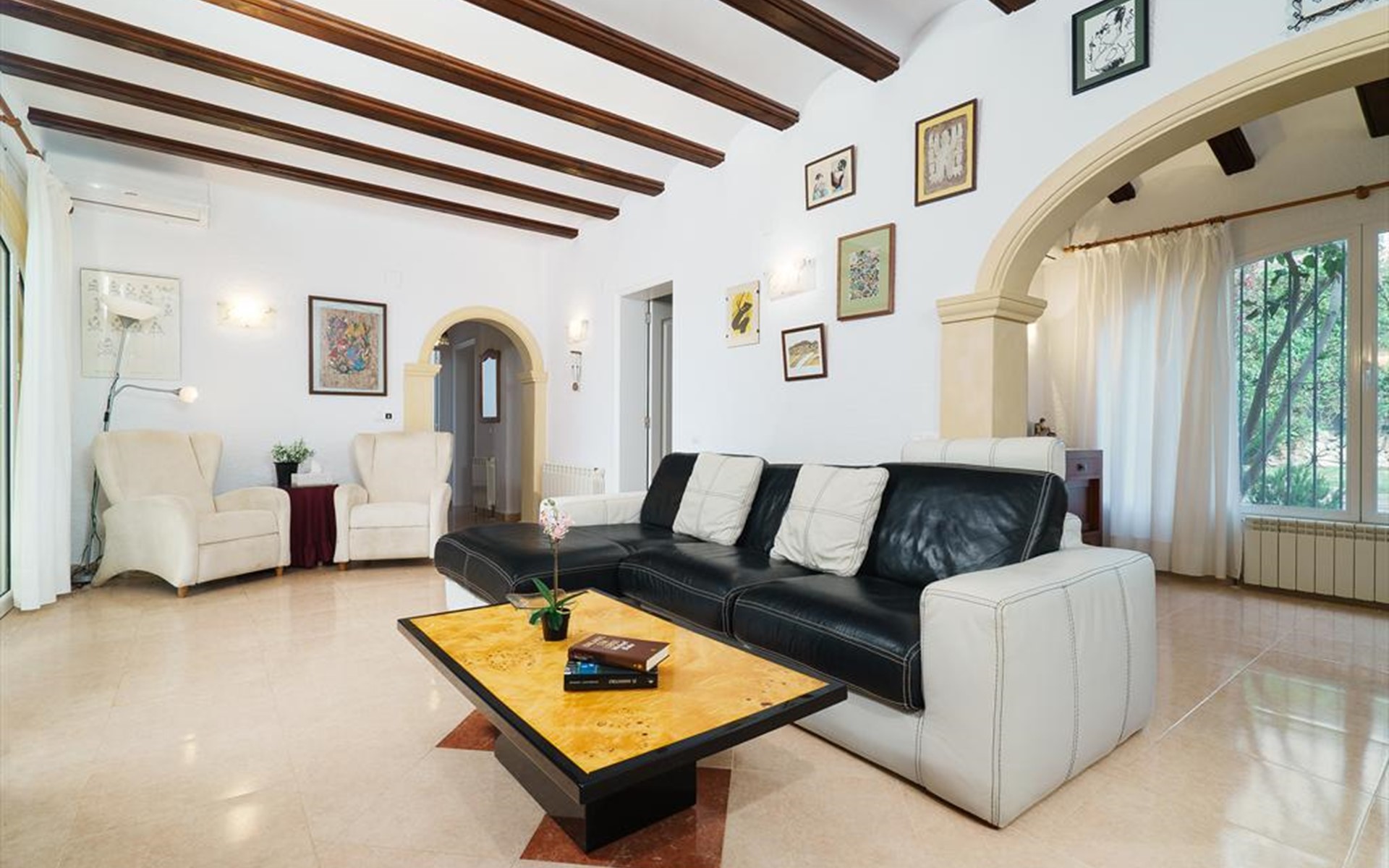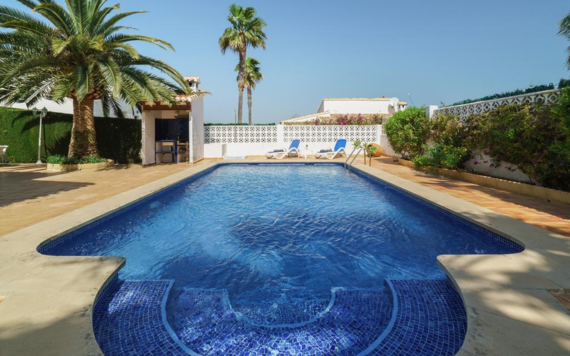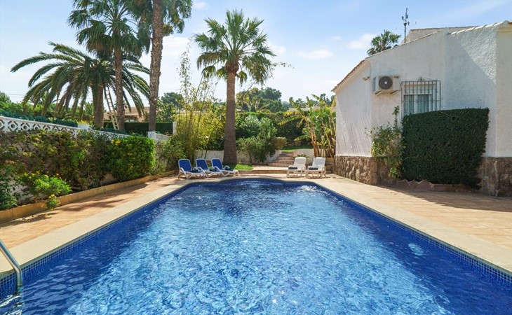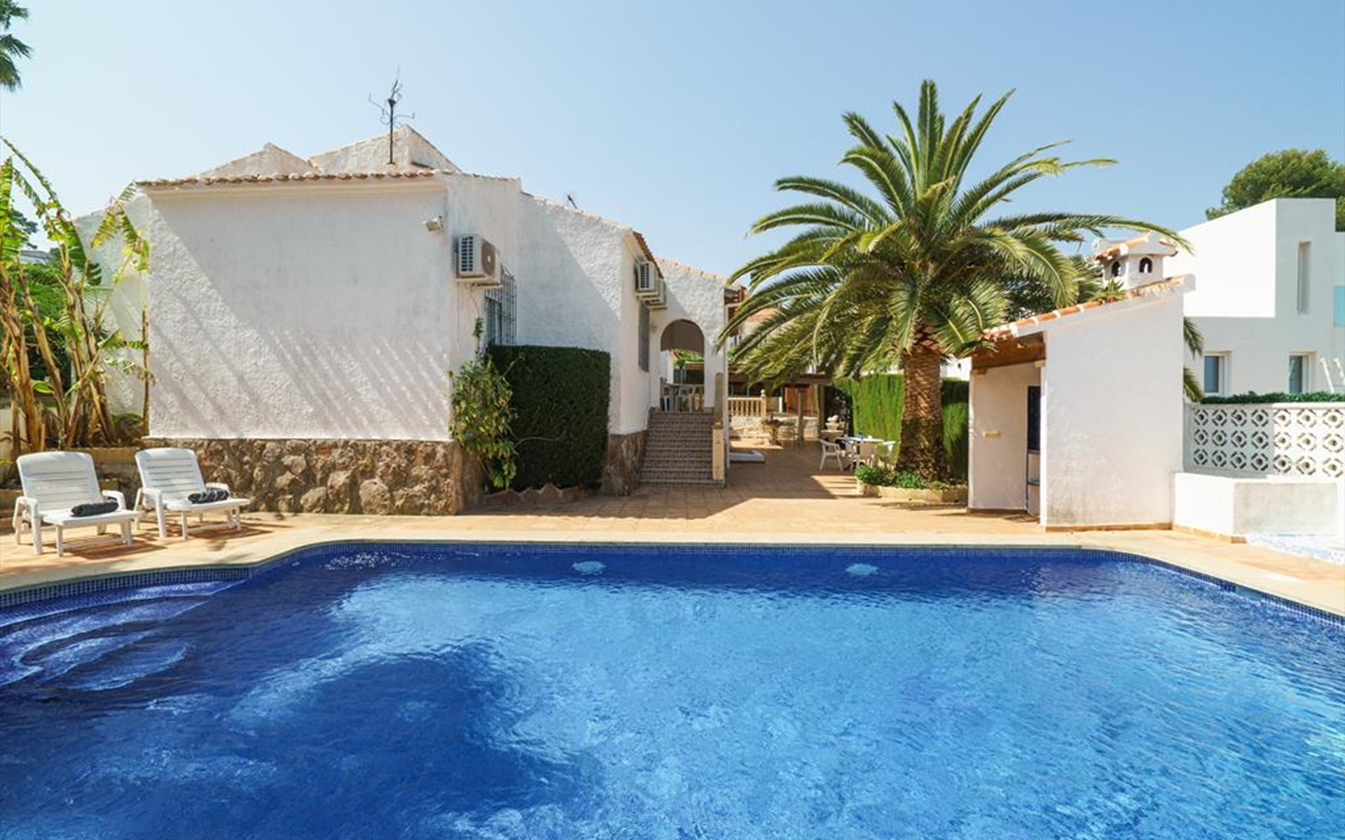Klassieke en comfortabele villa in Javea, aan de Costa Blanca, Spanje met privé zwembad voor 6 personen. De vakantievilla ligt in een heuvelachtige en residentiële kustomgeving, dichtbij restaurants en bars en op 4 km van het strand van El Arenal, Javea.