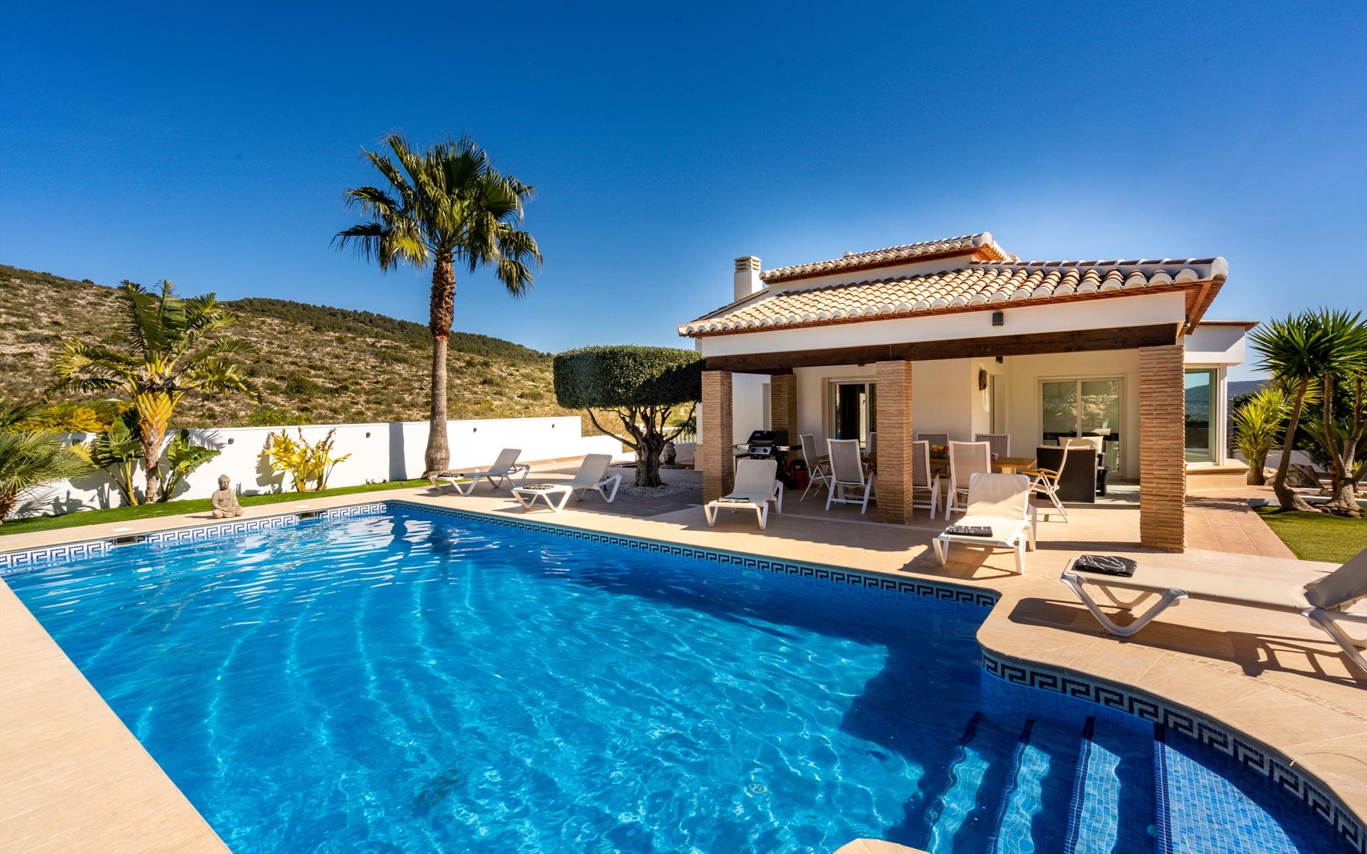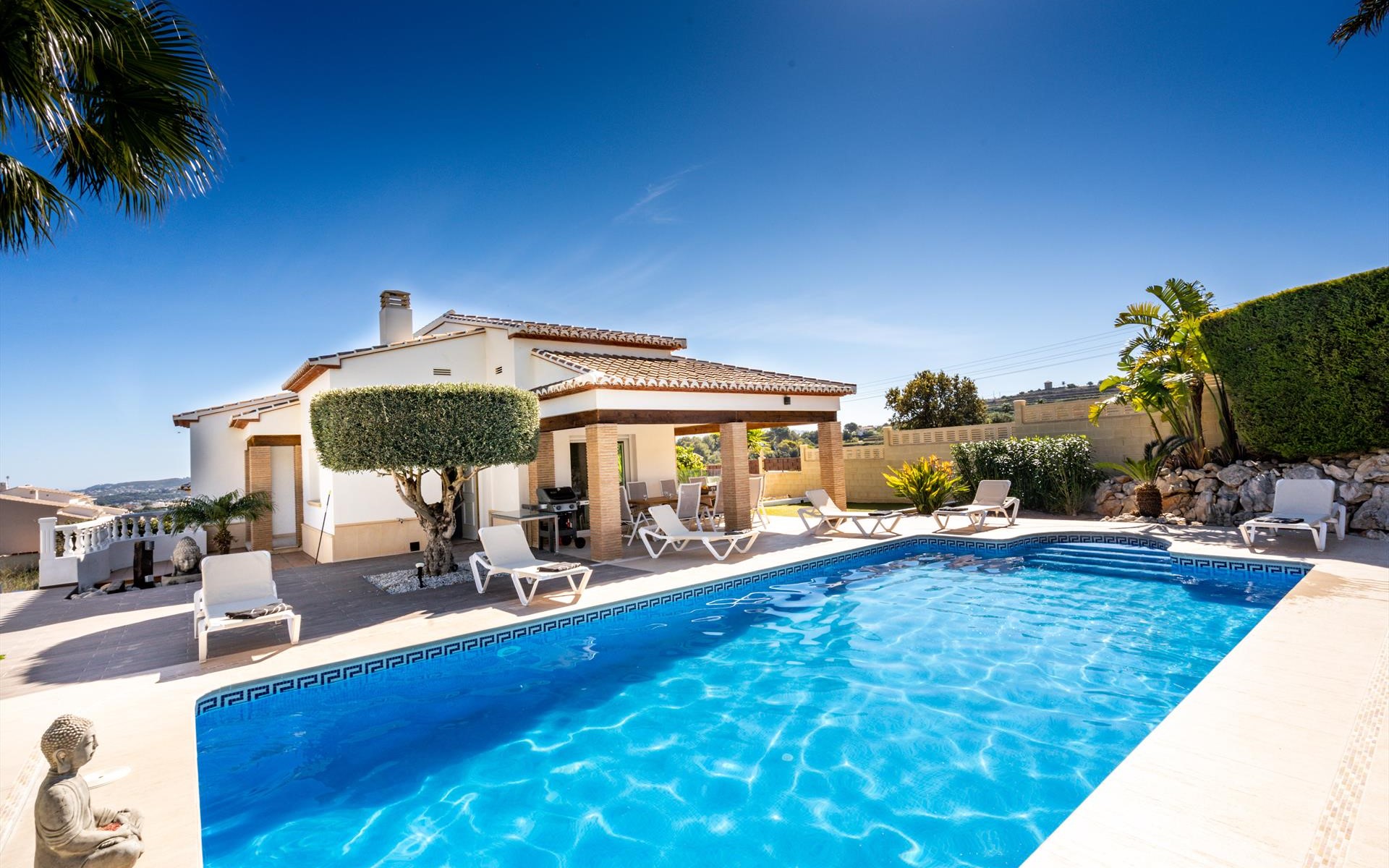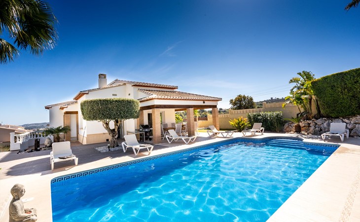 Groot en comfortabel vakantiehuis in Benitachell, aan de Costa Blanca, Spanje met privé zwembad voor 6 personen. De vakantiewoning ligt in een residentiële omgeving en op 5 km van Javea.