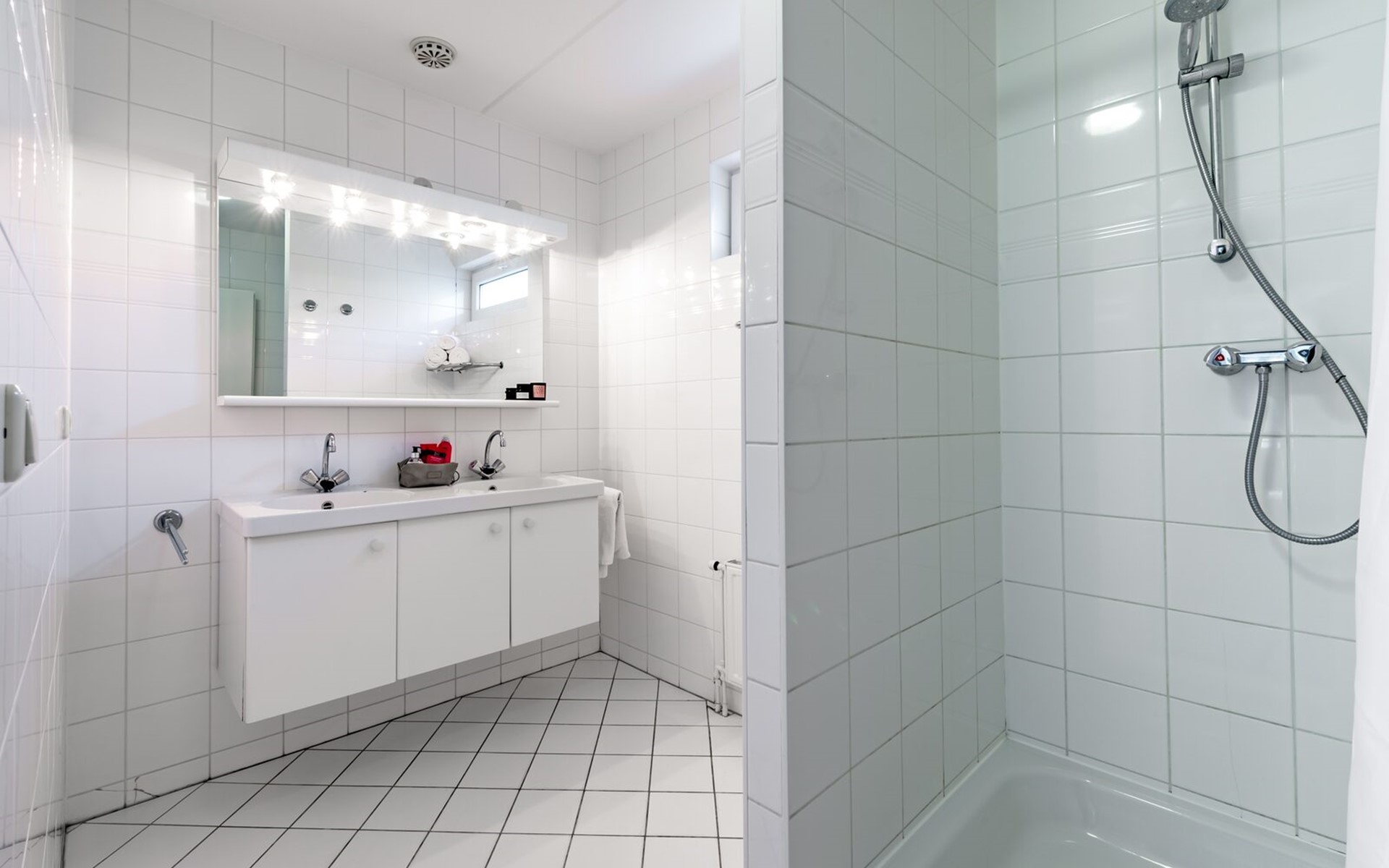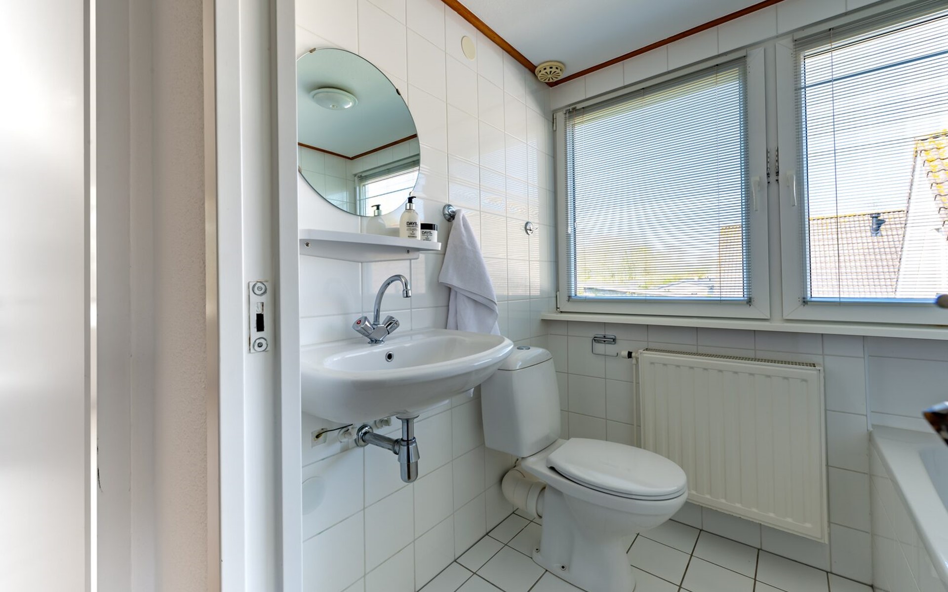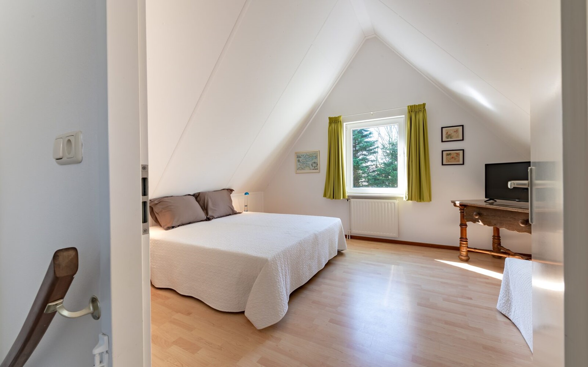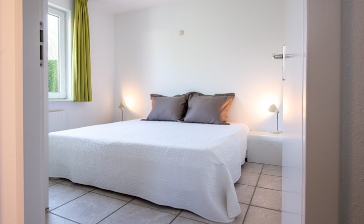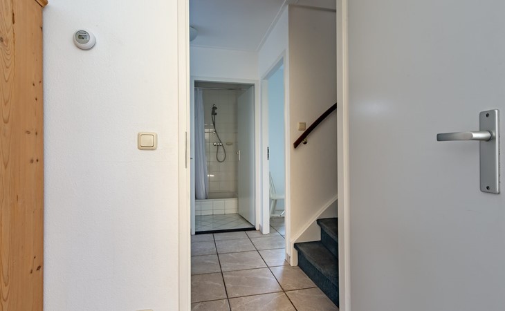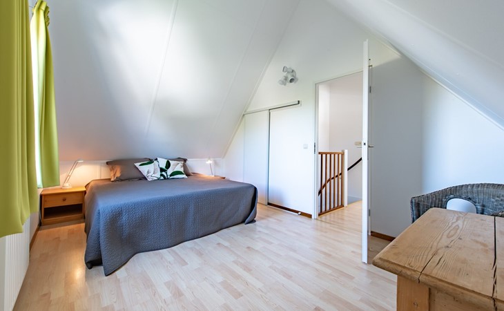 Op de benedenverdieping bevindt zich een slaapkamer met een lits-jumeaux en een badkamer met een dubbele wastafel en douche. In de hal is een gastentoilet. Op de verdieping bevinden zich twee riante slaapkamers en een badkamer. Een slaapkamer heeft een lits-jumeaux en een slaapkamer heeft drie eenpersoonsbedden. De badkamer heeft een bruisbad met douche, een wastafel en een toilet. In de berging staan een wasmachine en wasdroger tot uw beschikking. Aan de voorzijde van de woning bevinden zicht twee parkeerplaatsen.
