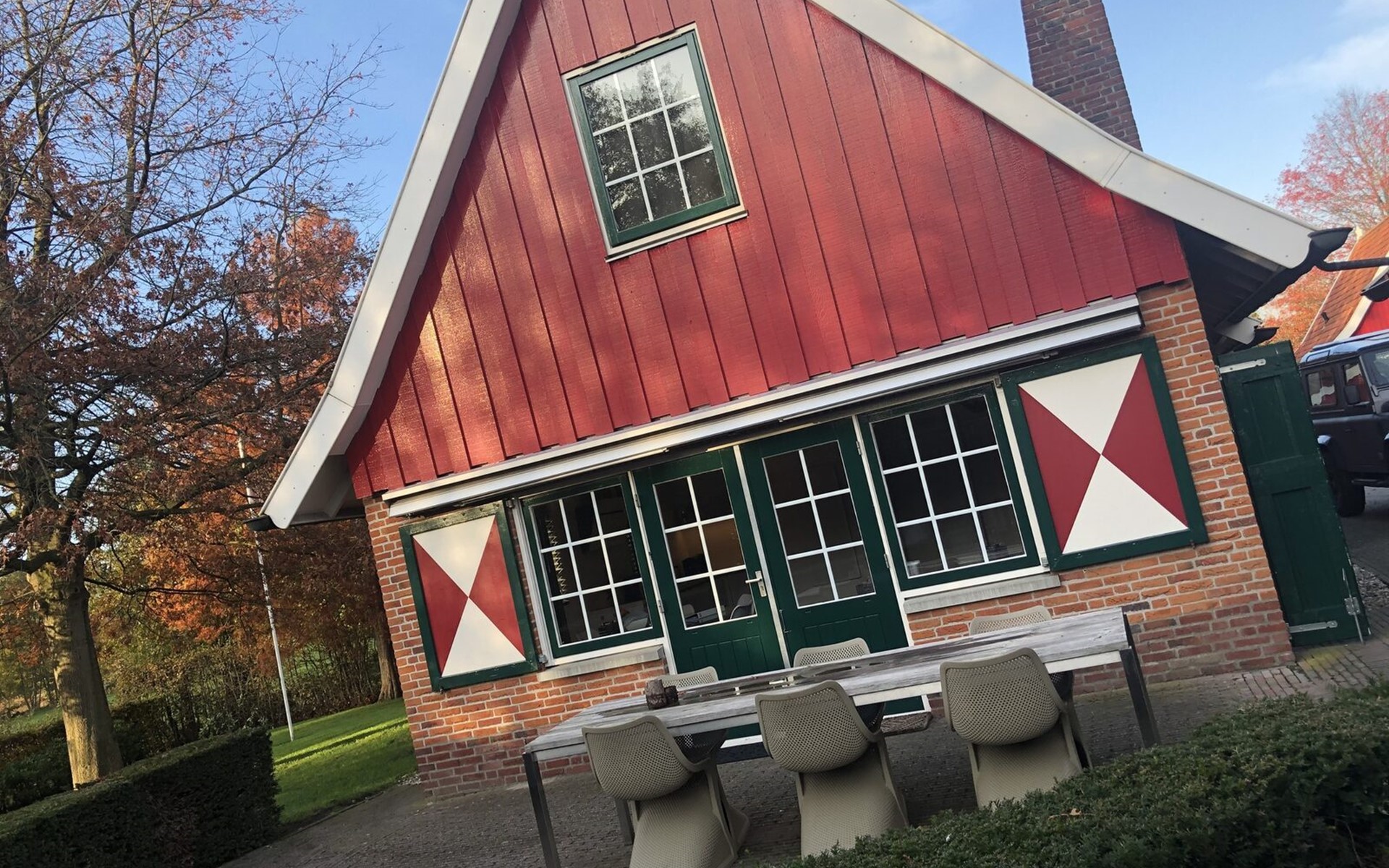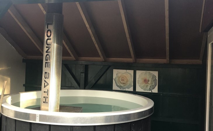 Vanuit de 6 persoons hottub die lekker onder het overdekte terras staat, heb je een prachtig uitzicht richting wei en zit je toch lekker beschut. Het overdekte terras met een steigerhouten loungebank, zorgt dat je ook bij wat minder weer toch lekker buiten kunt zitten en tot laat in de avond kunt blijven genieten. De buitenhaard geeft je net die extra warmte. De infra rood sauna staat in het bijgebouw, hier treft je tevens nog 2 wellness apparaten aan. Een bodyroll en een band massage apparaat.