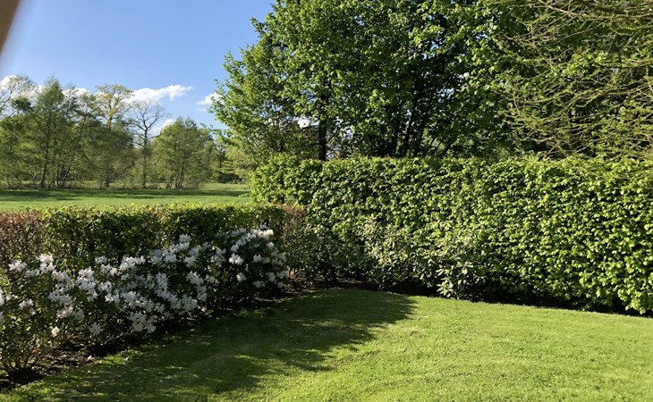 Ruime tuin met veel privacy en uitzicht over het veld. Hertjes en konijnen gespot. Heel fijn dat de hottub overdekt is.